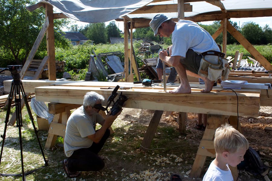 Это были фотографии, сделанные в самом конце мастер-класса. А 9-11 июля приезжали мои коллеги пообщаться друг с другом: пильщик Михаил Фаст из "Тимбер-тим" (Карелия), плотник Денис Меняйлов из Авторской группы "Фахверк" (Питер), кузнец ручного инструмента Михаил Артемьев (Петрозаводск), плюс те, кто приехал раньше: строитель деревянных сооружений Андрей Паталах (Ростов), будущие жители деревни Иван и Мария Петропольские (Москва), строитель собственного дома Павел (Томск), фермер и строитель из самана Глеб (Полтава).