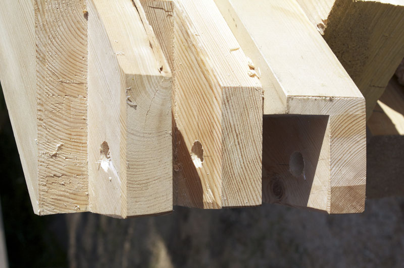 Укосины с просверленными отверстиями под нагели. Отверстия просверливаются до монтажа каркаса ...