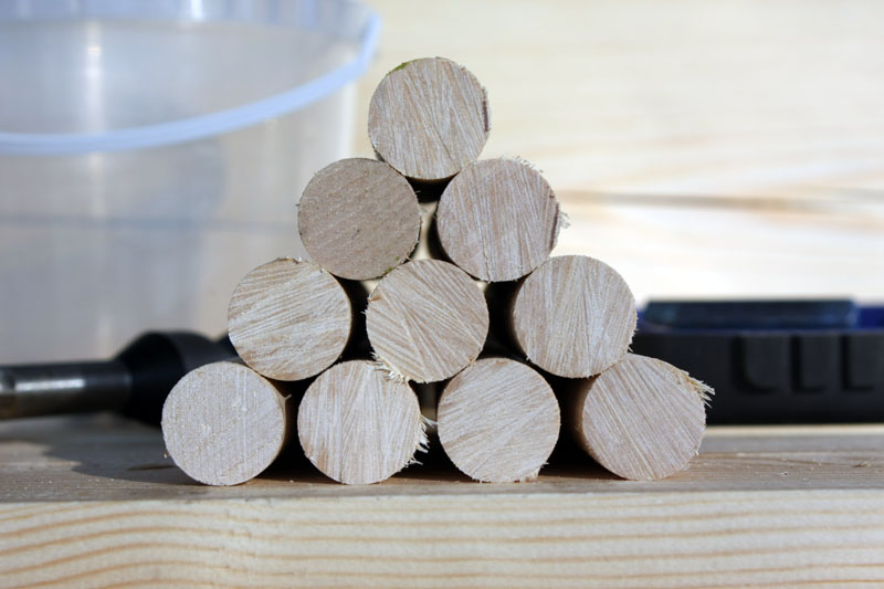 Березовые нагели диаметром 3/4 дюйма.